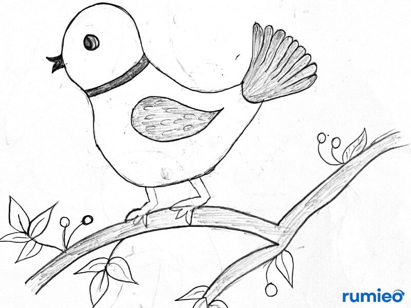 Watching birds in sky or on a tree is lovely feeling. The chirping sound is mesmerizing. Let’s draw a bird sitting or singing on a branch of tree like this drawing.