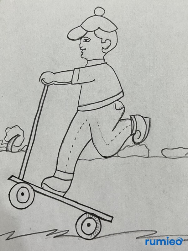 Young Boy Moving on Scooter – Simple Pencil Drawing