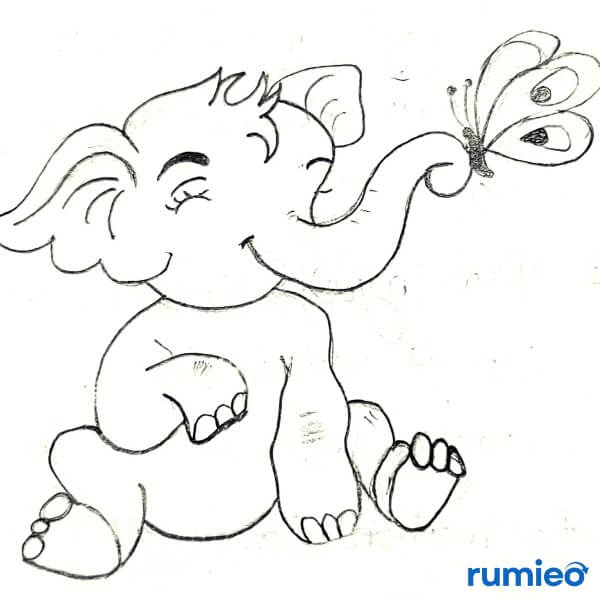 We all love butterfly and elephant. Do you want to draw a baby elephant playing with a butterfly? Pick a pencil and start to draw according to the above image.