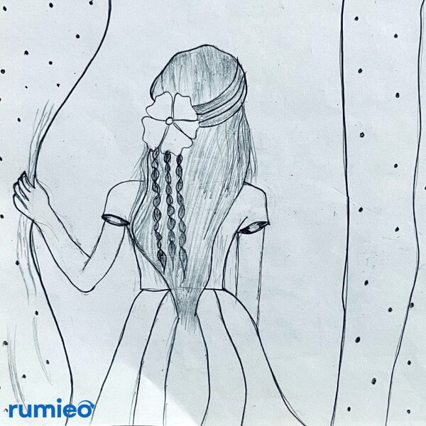 In this drawing, a girl is looking outside a window, holding the curtain. Kids love to see outside world. This could be a interesting drawing project from them.