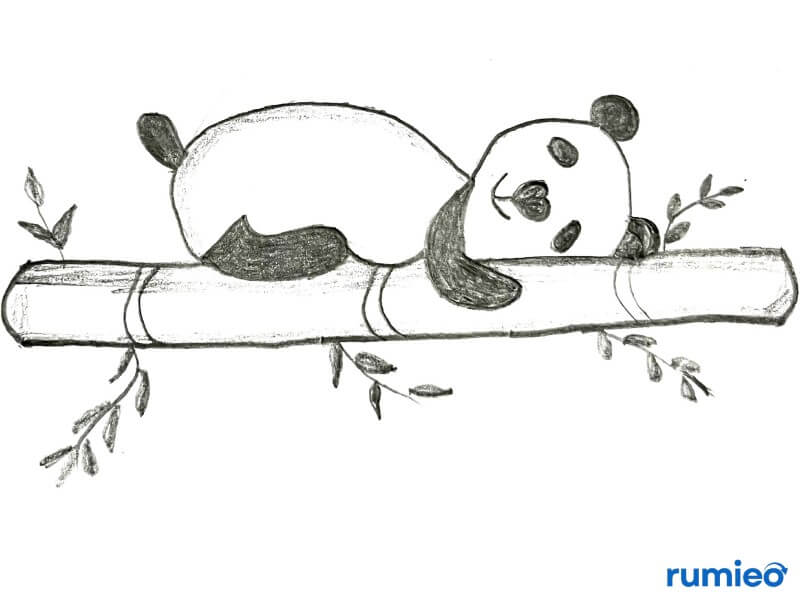 As you are seeing in above drawing, a cute panda resting peacefully on a bamboo branch. Do you want to make this drawing. Pick a pencil and start drawing bamboo leaves surround the sleepy panda.