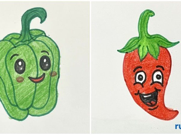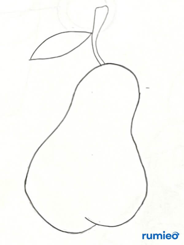 This drawing is so easy that even a kindergartener can draw it. It is a fresh, smooth pear with a curved shape. We have made it simple but if you want you can shade it softly for a natural 3D effect. A small stem with a leaf can be added on the top as shown in the above image.