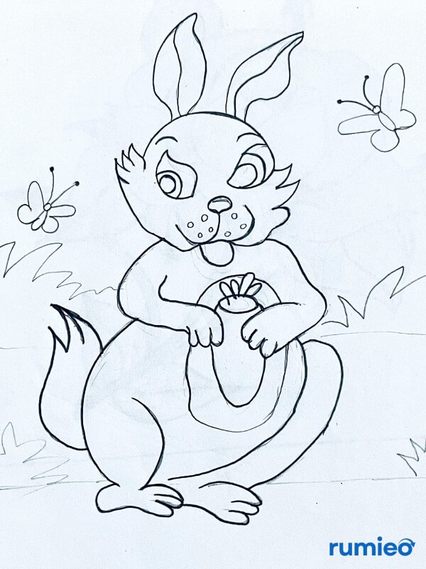 A fluffy rabbit drawn with the help of pencil. Long ears and big eyes make it look beautiful. If you want you do some shading to bring out the texture of fur on the body of rabbit.