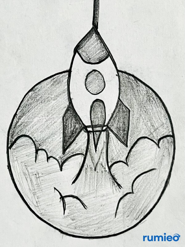 Make this rocket drawing and get your rocket ready to launch into the sky. Sharp outlines using dark pencil or sketch give it a bold look. With gentle shading kids can add depth and 3D look to the rocket.