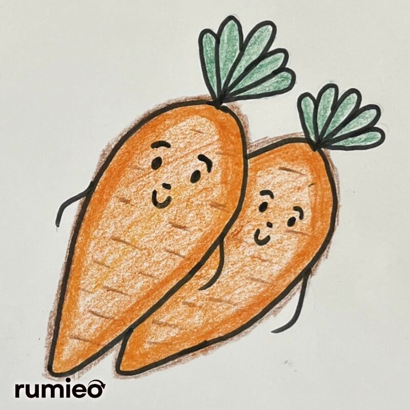 - Color orange for the carrot and add green shades to the leaves.
