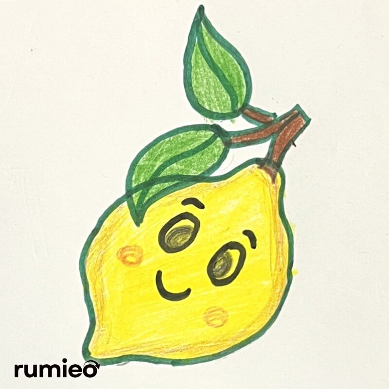 - Use the yellow color for the lemon and use green for the leaf.