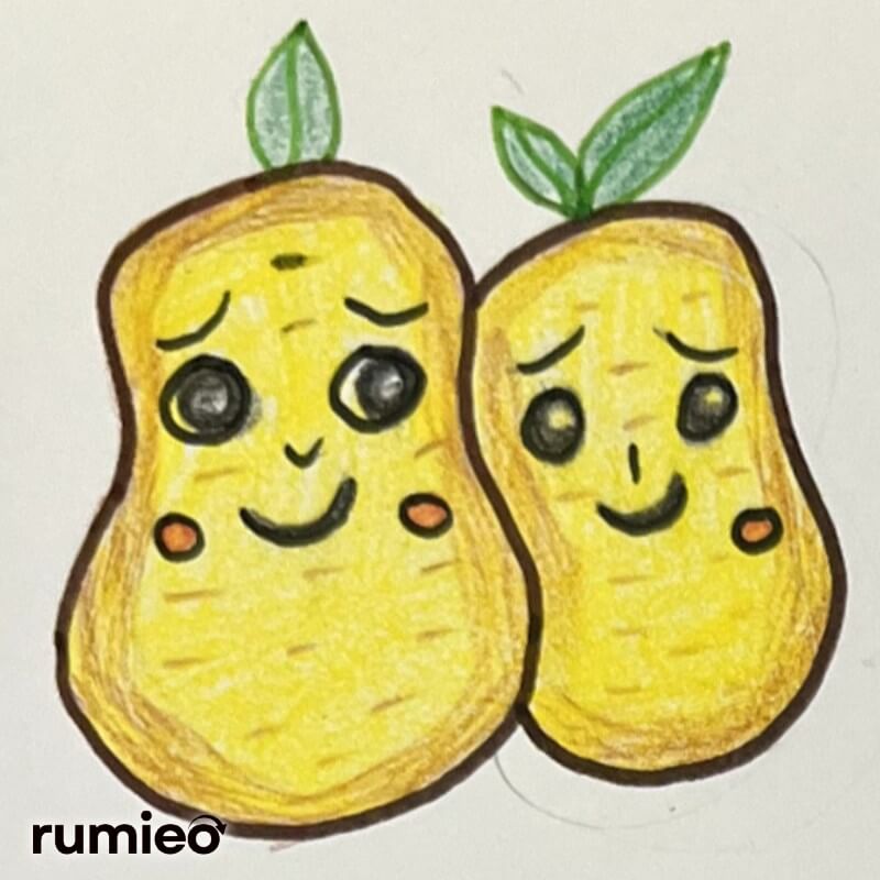 - Draw green leaves on the top of the potato. Outline with green sketch and fill it with light green color.