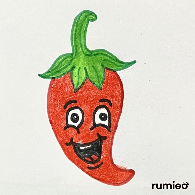 - Add a pair of big eyes and a large mouth to the chilli.
