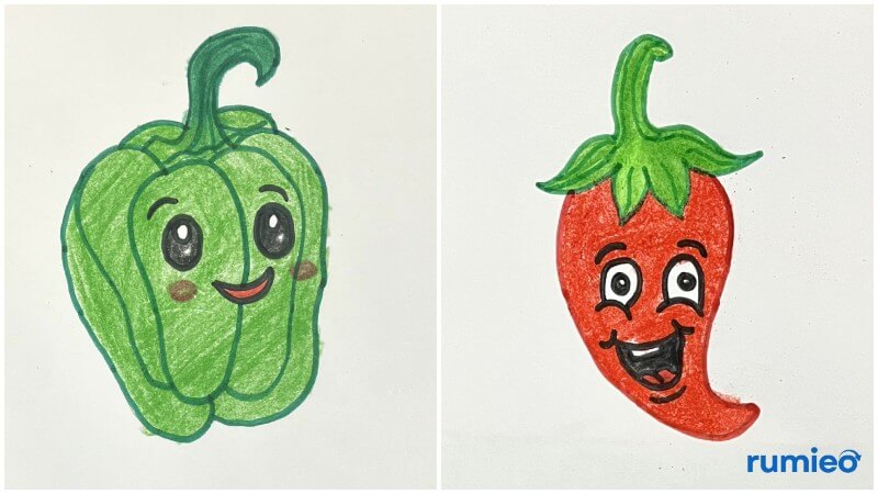 - Add a pair of big eyes and a large mouth to the chilli.